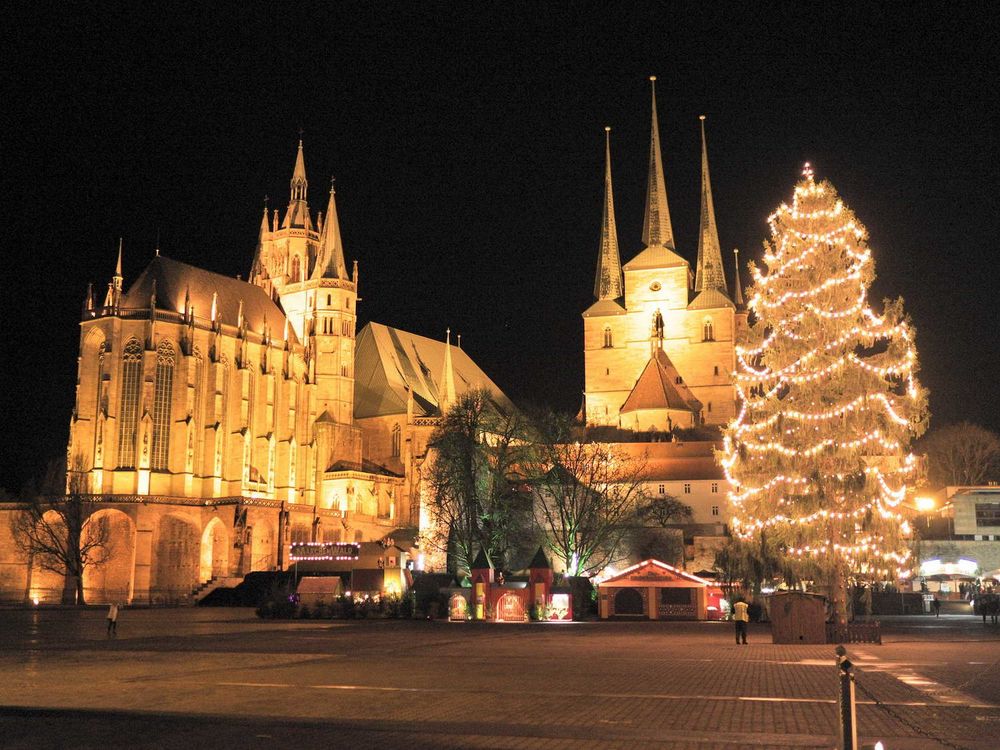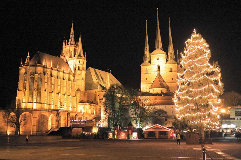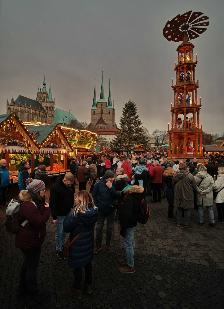 Der Erfurter Weihnachtsmarkt gehört zu den schönsten Weihnachtsmärkten Deutschlands und ist der größte in Thüringen. Die mittelalterliche Altstadt Erfurts um den Domplatz bietet die ideale Kulisse für eine stimmungsvolle Vorweihnachtszeit. Traditionelles Handwerk und Thüringer Spezialitäten sind ebenso zu finden wie eine riesige, kerzengeschmückte Weihnachtstanne mit Krippenhaus und handgeschnitzte, fast lebensgroße Figuren sowie viele Geschäfte nach Schaustellerart. Die gesamte Innenstadt liegt im Lichterglanz, Geschäfte und Kaufhäuser haben Adventsschmuck angelegt. Weihnachtsmelodien erklingen, und der Duft von Glühwein und Pfefferkuchen liegt in der Luft. Bemerkenswert sind auch die ca. 25 Meter hohe, festlich beleuchtete Weihnachtstanne und die 12 Meter hohe Weihnachtspyramide.